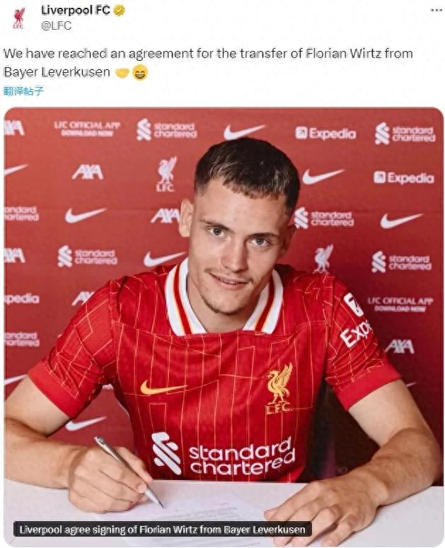 根据此前的报道,维尔茨的转会不仅打破了利物浦队史引援费用纪录,同时也创造了英格兰足坛买人转会费纪录!