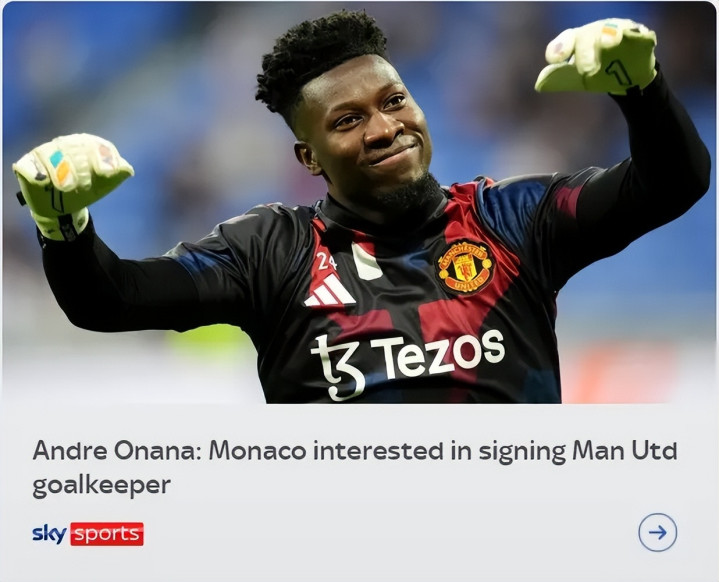 意大利天空体育消息,摩纳哥有意奥纳纳,他们正探索签下这名29岁门将的条件。奥纳纳上赛季在曼联犯下众多失误,传闻称他有可能在今夏被清洗,球员的合同还有3年到期。