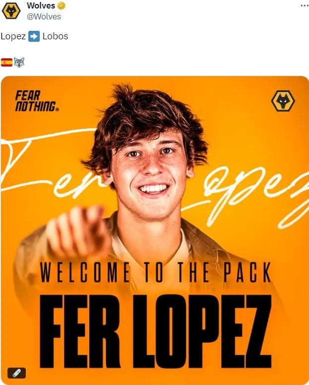 官方:狼队宣布从塞尔塔签下了前场多面手费尔-洛佩斯(可以踢边锋和攻击型中场),双方签署了一份5年合同。